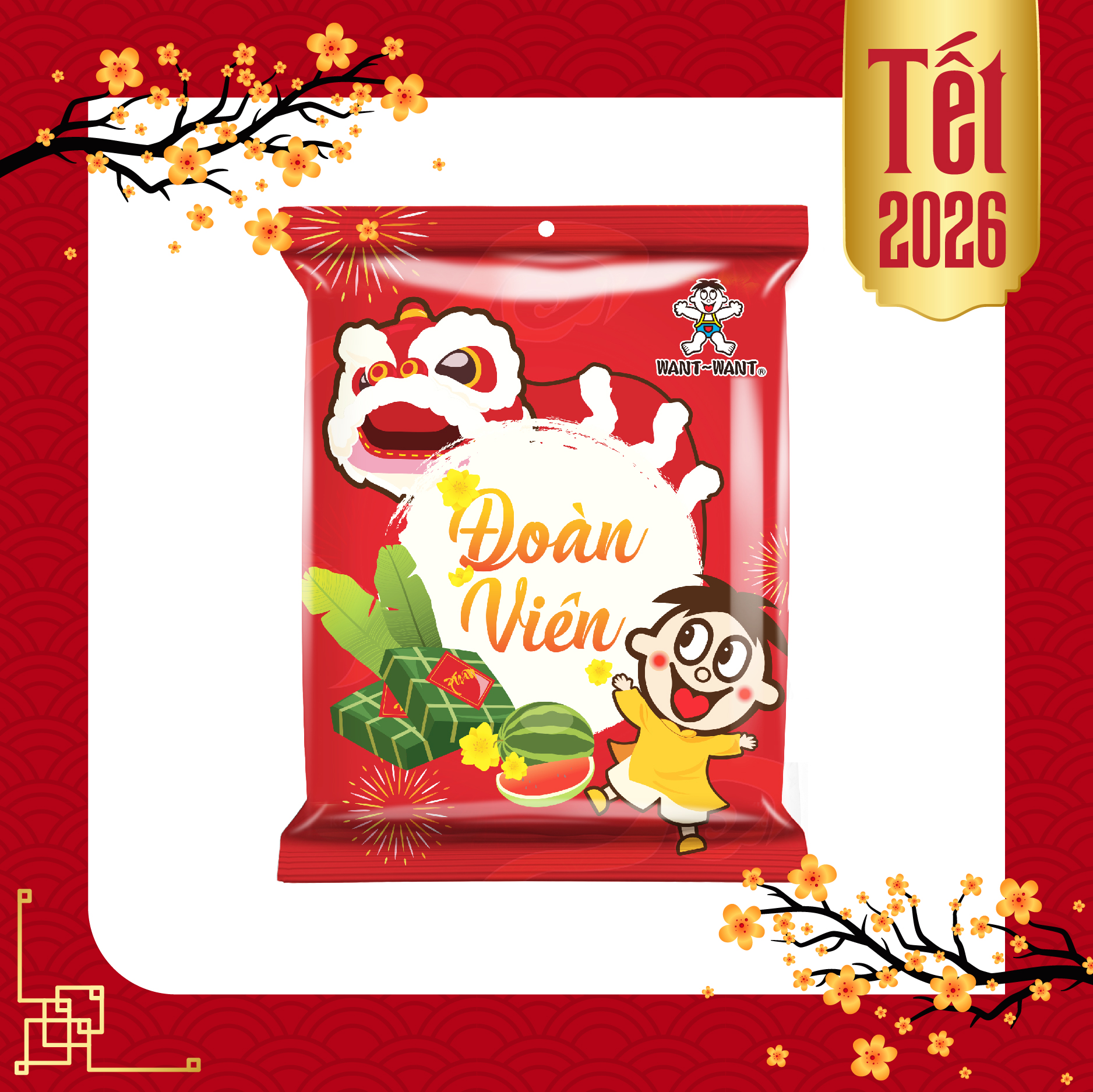 Đón Tết 2026 trọn vẹn và ý nghĩa cùng Bộ Quà Tết Want Want Đoàn Viên - set quà Tết mang thông điệp “Đoàn viên là hạnh phúc”. Từng gói bánh gạo Want Want giòn rụm, thơm ngon là lời chúc an khang, hạnh phúc và sum vầy gửi đến những người bạn yêu thương.